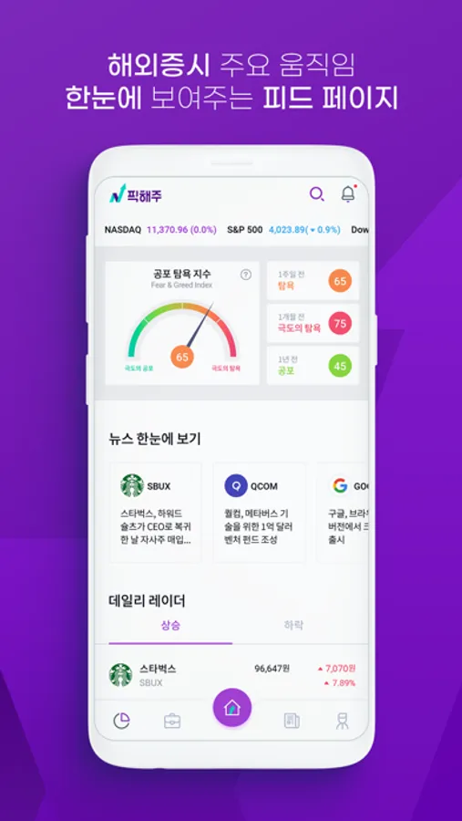 하나의 앱으로 해외증시 동향과 내 관심종목/투자포트폴리오 관리를 한번에!