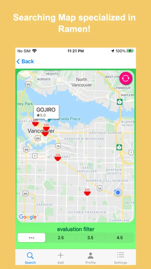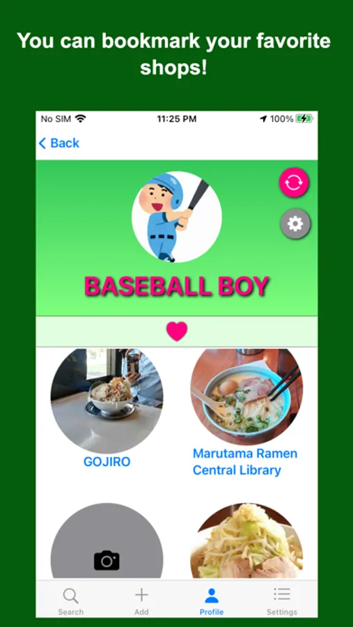 Bookmark(favorite) function is also implemented so that users can check their favorite shops on their profile.