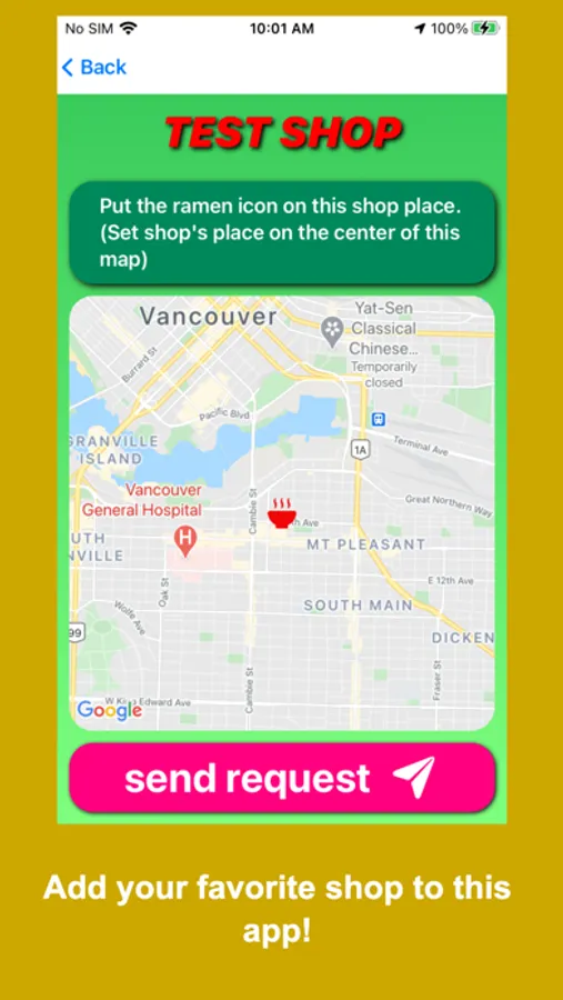 Another main feature of this app is that users can add Ramen shop data to this app by creating a request.