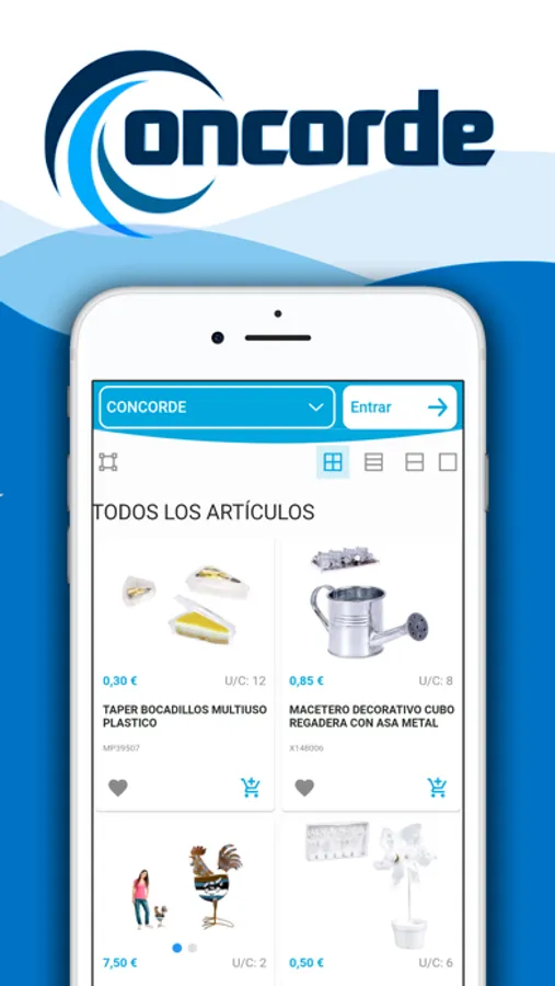 Concorde Iberica ofrece a través de nuestra APP su catálogo para que puedas realizar tus pedidos de forma ágil y en el momento más oportuno. Además podrás realizar un seguimiento de tus compras y ser el primero en recibir notificaciones de las nuevas entradas y promociones.