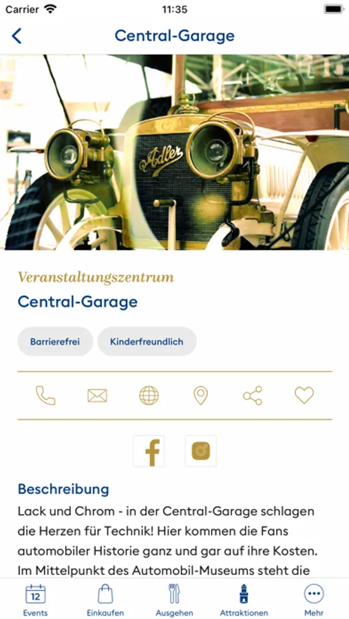 Events: Der Veranstaltungskalender hält Sie auf dem Laufenden und mit der eingebauten „Veranstaltung merken“ – Funktion können Sie Ihre Lieblingsveranstaltungen in Ihren mobilen Kalender auf dem Smartphone oder in der Cloud eintragen.
