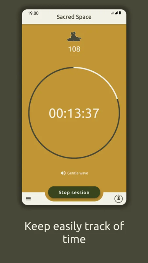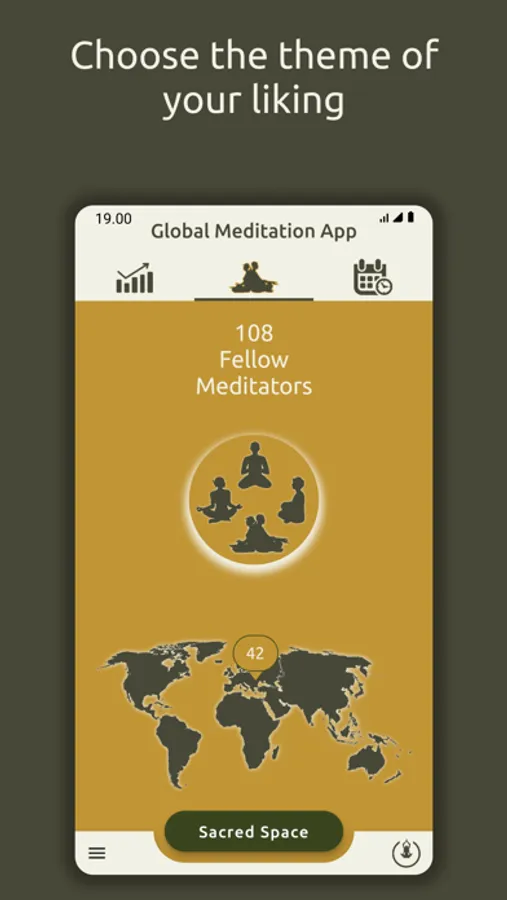 In the Global Meditation App you can enter your own Sacred Space. This is your space of peace and calm, so customize it to get as comfortable as possible. Do not worry about the time. Let the app mind it for you. Choose how long you would like to meditate and the app will count down, either showing both the remaining time and a graphical representation of it, or just the graphics without the time. Moreover there is an option to play a pleasant sound when the time is up. Another option is to let the timer simply count the time up until you yourself stop it.