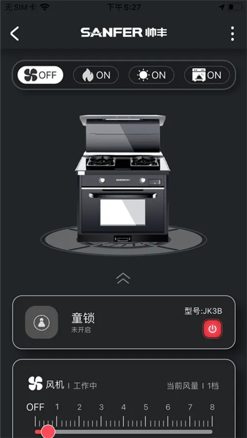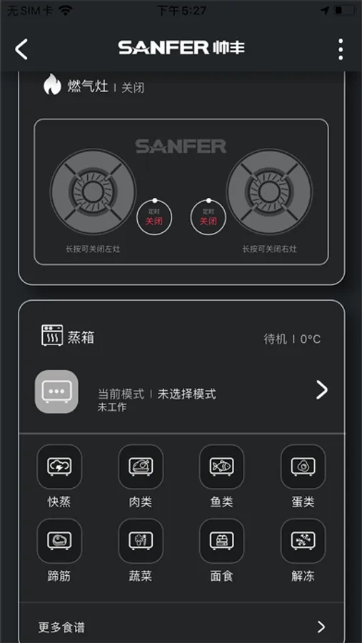 通过app可控制帅丰集成灶,提供为帅丰集成灶控制板继续配网以及远程操控蒸烤箱燃气灶等功能