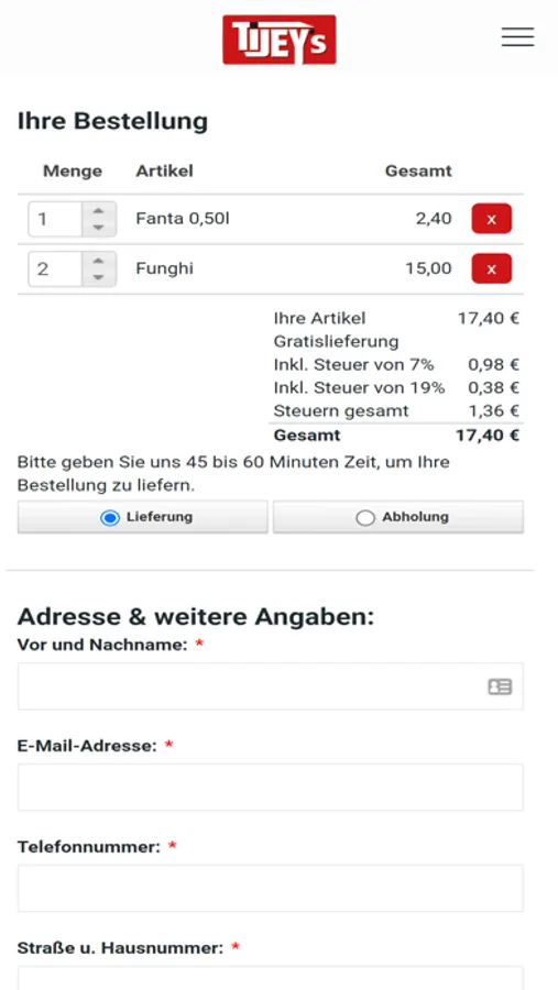Tijey's Döner & Pizza ist eine App von StayAtHome für schlaue Lieferdienste.
