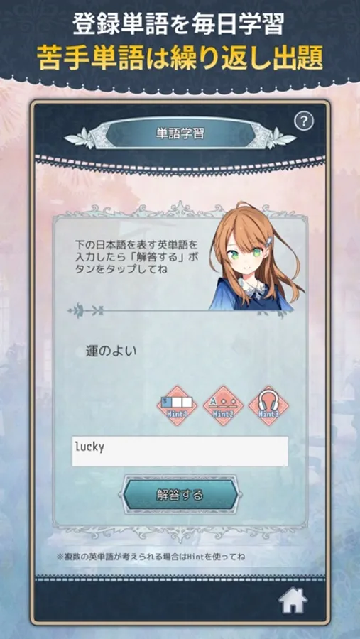 学習は苦手単語を優先して出題!覚えるまで繰り返し出題されることで、苦手を克服できます。