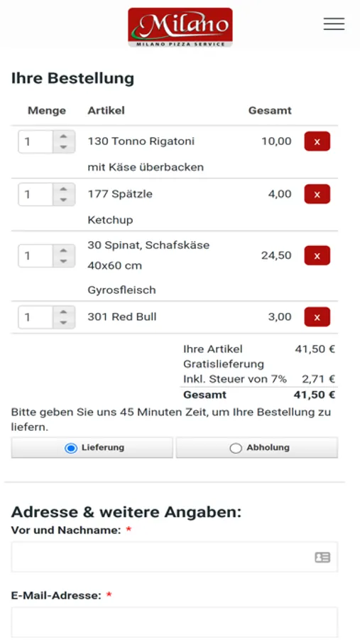 Willkommen bei Milano Pizza Service!
