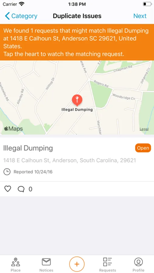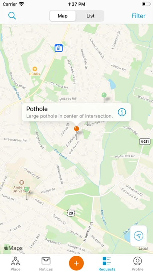 Report location specific issues such as potholes, road hazards, light outages, traffic accidents, etc.