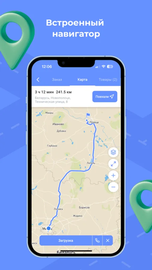 • привычный навигатор – возможность в несколько касаний проложить построенный логистом маршрут в любом знакомом навигаторе.