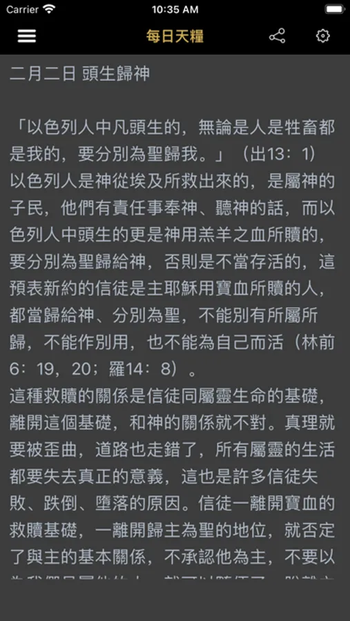 * 每日天糧:將生活的實踐與主靈交的甘甜,所得的勸勉、應許、警戒等,逐日列出,可供全年讀經參考