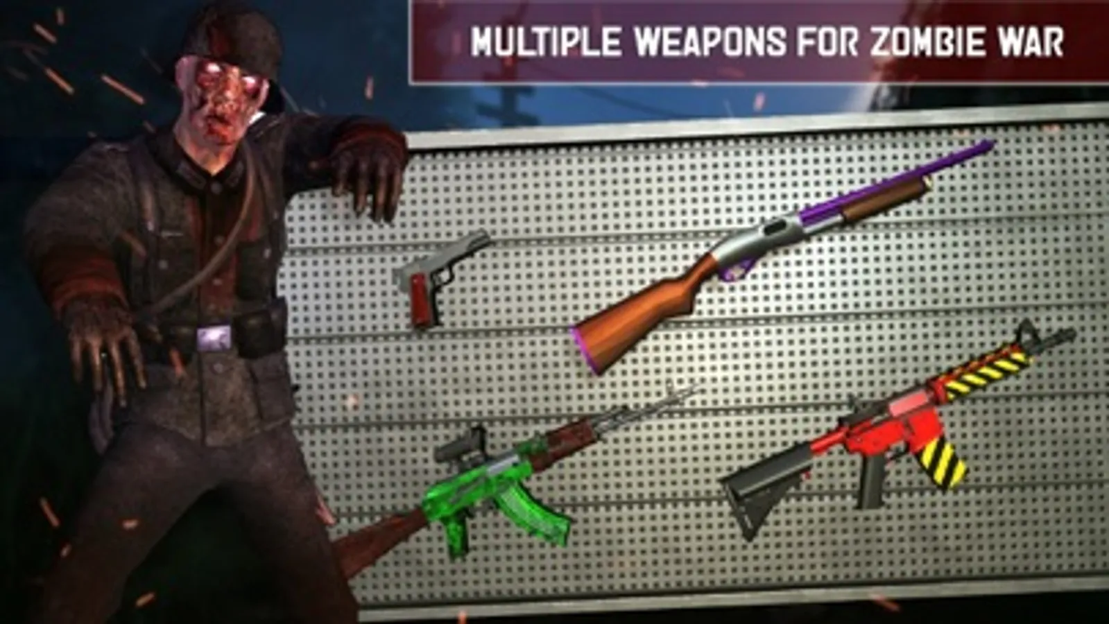Battle your way to a final victory in zombie world war. Challenge yourself inside a zombie attack world in this killing action fps strategy battle! Train your gun shooter skills as a survivor in front line fighting for your survival. Enhance your arsenal of ammunition and battle weapons and face zombies shooting as an elite sniper hunter with the best guns and rifles in this dead zombie action combat game! This lethal battlefield war has only one target, stop the zombie attack. Save the frontier in these zombie gun strike games!