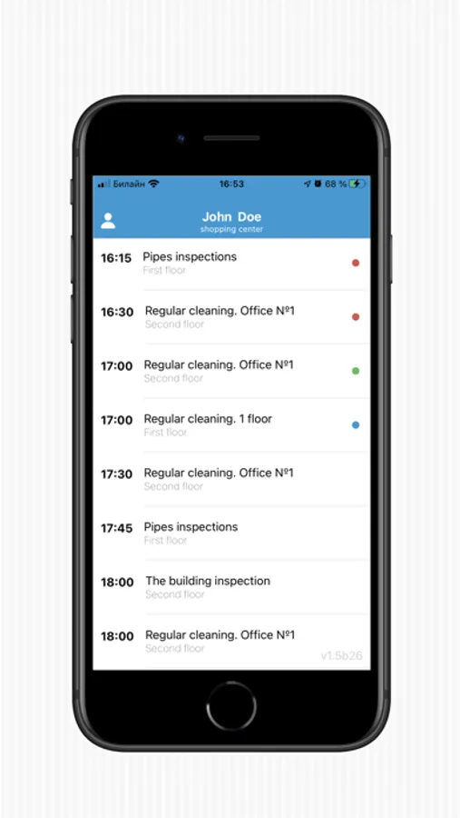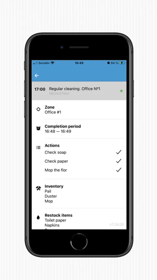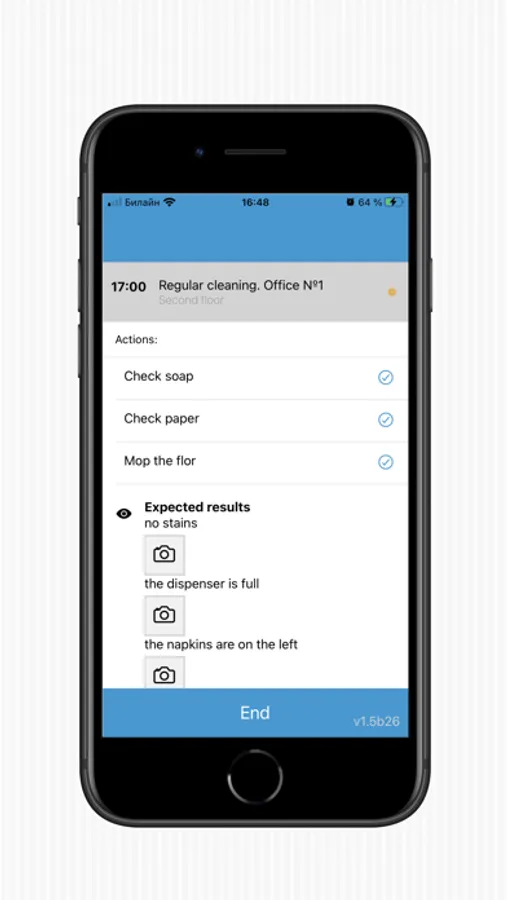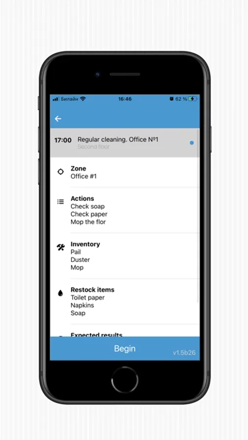 Bruno's app helps you get the job done on time and with predictable results. In addition to the information component, the application is also a terminal for identifying an employee in the place where a task is assigned to him.