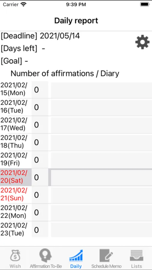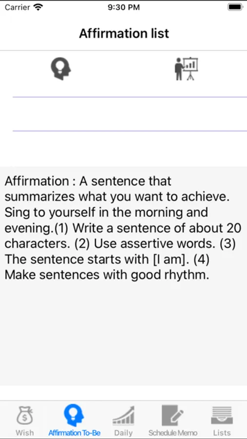 ・ Affirmation list page… The situation that it has achieved in two years will be expressed in sentences. Frequently reciting this to yourself is said to increase your chances of achieving your goals.
