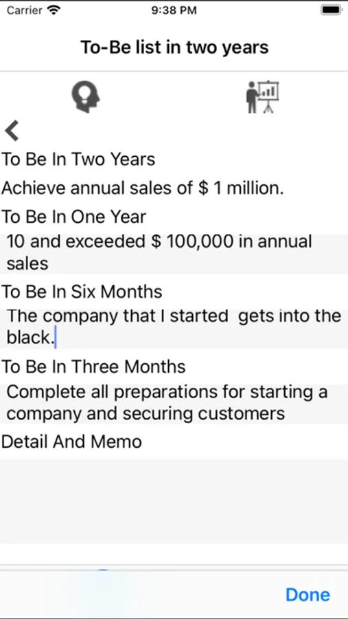 ・ To-Be list page: You can consider what you want to achieve in two years and what you need to achieve before that.