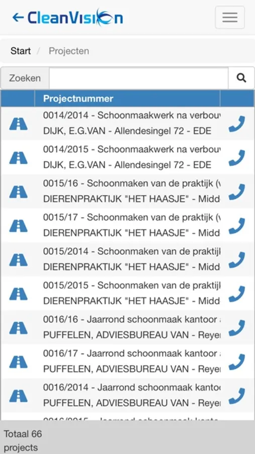 Met de VisionMobile app voor CleanVision kunt u 24/7 en locatie onafhankelijk registraties op de uitvoering van de projecten voeren: