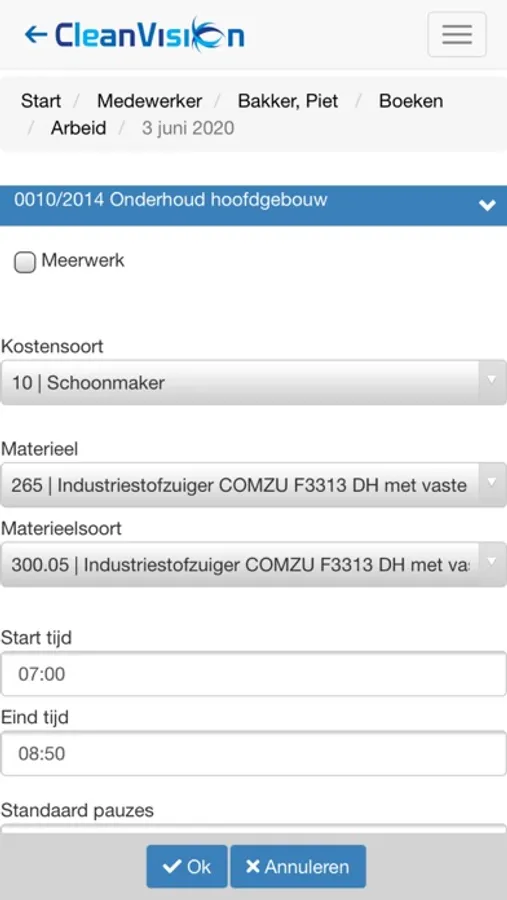 1. Live verwerken van gemaakte arbeid- en materieel uren en verbruikte materialen.