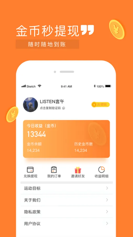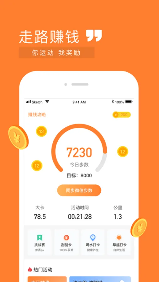 全民快走通过苹果的CoreMotion框架统计您的步数,用户在每天的运动过程中,步数可以在APP上兑换金币,让你在轻松有趣的过程中边运动边赚钱,每天收获健康和红包。