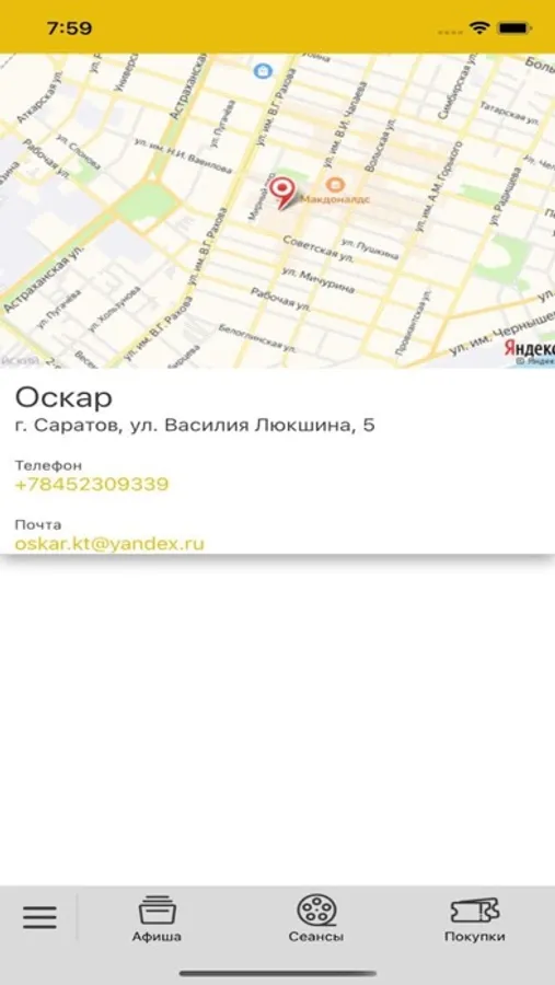 - узнавать расписание сеансов и цены на билеты