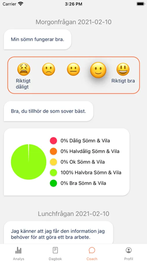 Mindtemp hjälper dig till ökat välmående och livsbalans. Du får analyser och positiv feedback. Som en egen hälsocoach i din mobil. En digital hälsorobot ger anonymiserade analyser och visualiseringar för kontinuerligt förbättringsarbete i er organisation. Det gör att du och din organisation kan arbeta tillsammans, för bättre och förebyggande hållbar hälsa med lägre stress.