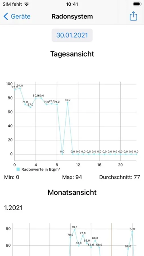 Mit der Radonsystem-App können die Messwerte des Radonsystems verwaltet werden.