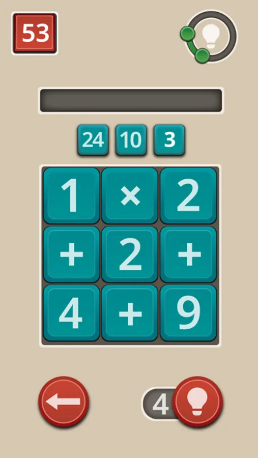 To solve each puzzle you will need to connect numbers and arithmetical operations and reach the targets.