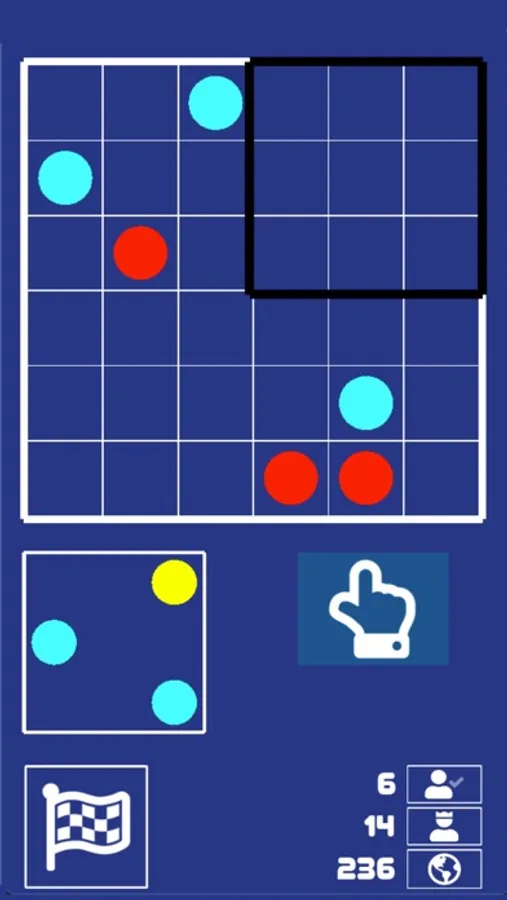 KREPZEN is a game designed by Néstor Romeral Andrés, from Nestorgames, and implemented by Garage Imagina. Place the 3×3 group of balls on the board, trying to match as many colours of existing balls as possible. For each matching colour you’ll get 5 points. For every ball placed on an empty space you’ll get 1 point. If you place a ball atop another ball of a different colour a black ball will be created, that you could remove by spending points.