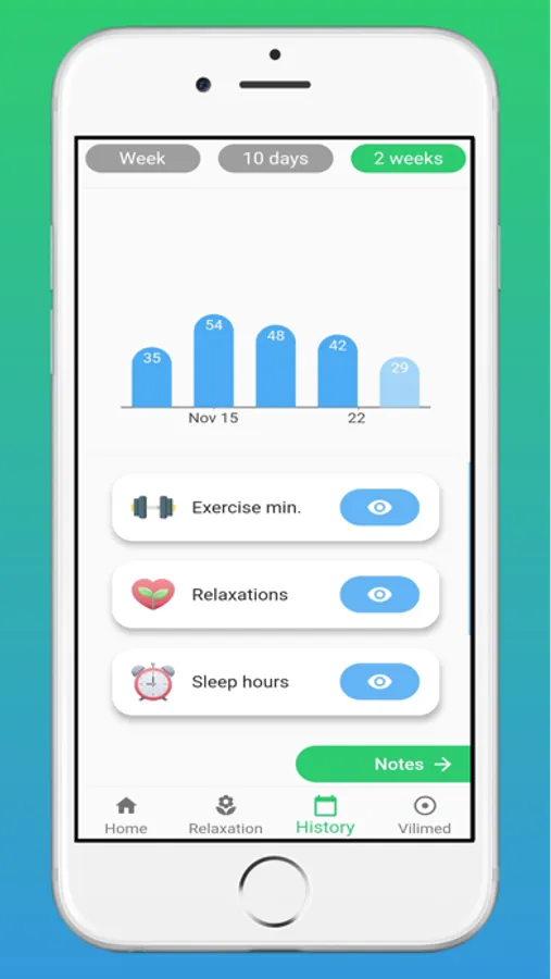 Our aim is to help you reduce hand shakiness up to the best possible condition! App helps to track your daily activities that may affect daily tremor intensity. It allows to visualize saved data and notes, connects to Vilimed devices and performs many more functions.