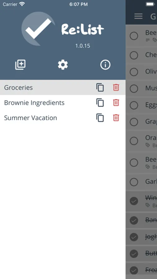 Re:List allows you to quickly create, reuse, reset and copy lists as well as efficiently organize your list items. Whether it's your frequently used shopping list or a packing list for your annual vacation, Re:List is here to help you to stay organized and minimize duplicate work. With Re:List, you'll never forget to pack your sunblock or winter hat again!