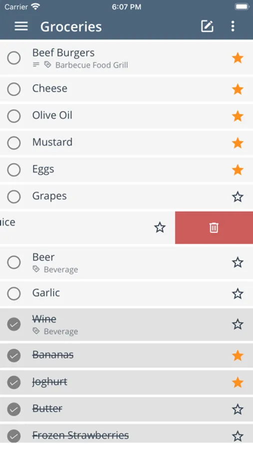 Lists and items that you use frequently can be protected from accidental deletion by marking a list as locked. Items of locked lists can still be checked off, changed and copied, but they cannot be deleted or moved from the locked list, which makes a locked list perfect to use as a template or recurring checklist.