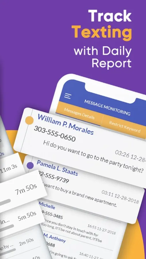 8) MESSAGE MONITORING: Monitor your child’s text messages and get alerts when inappropriate topics like sex or drugs are discussed!