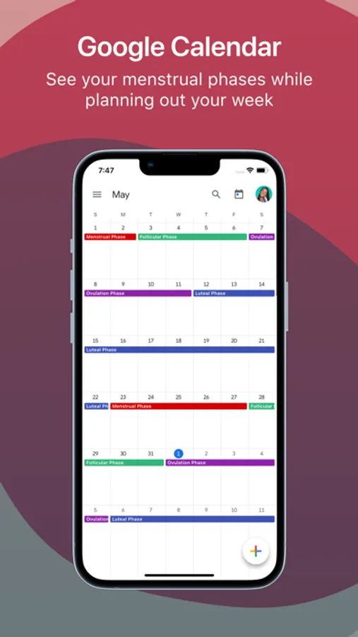 GOOGLE CALENDAR - Sync with your Google Calendar to see your menstrual phases while you’re planning out your week.