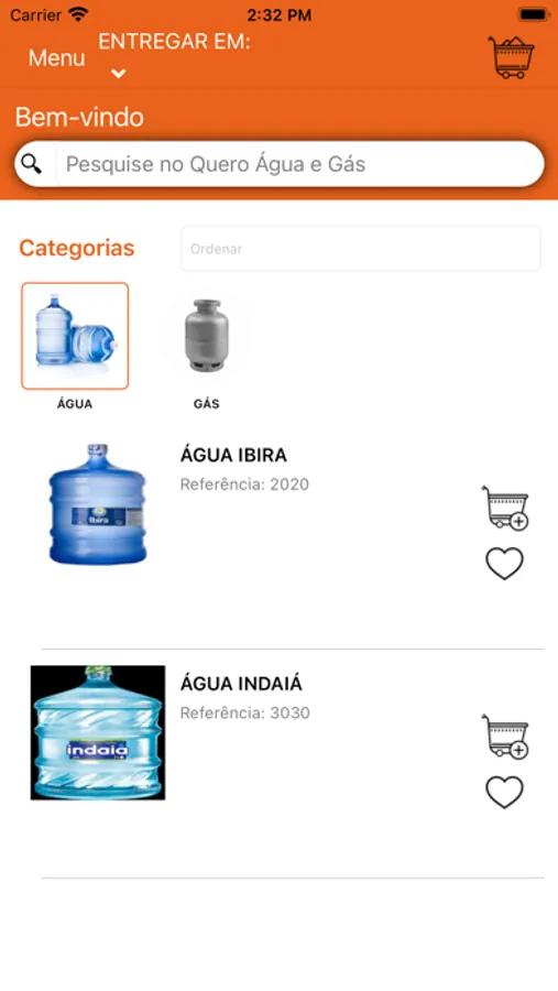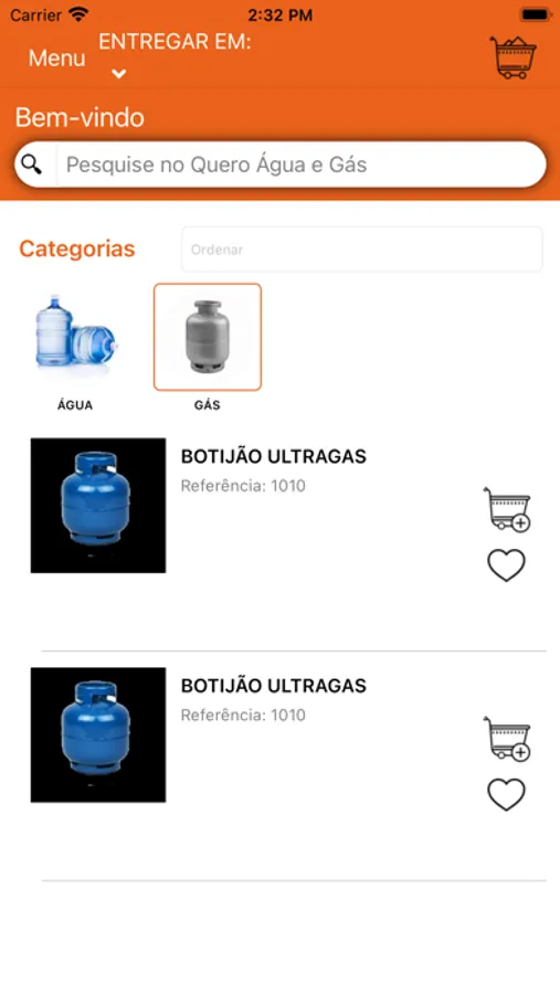 Aplicativo para venda de água e gás com entrega à domicílio.