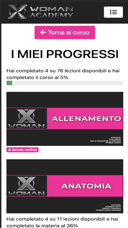 Grazie all'app di XWOMAN Academy potrai accedere dal tuo smartphone per studiare le lezioni, guardare i video, fare i quiz e controllare il tuo apprendimento!
