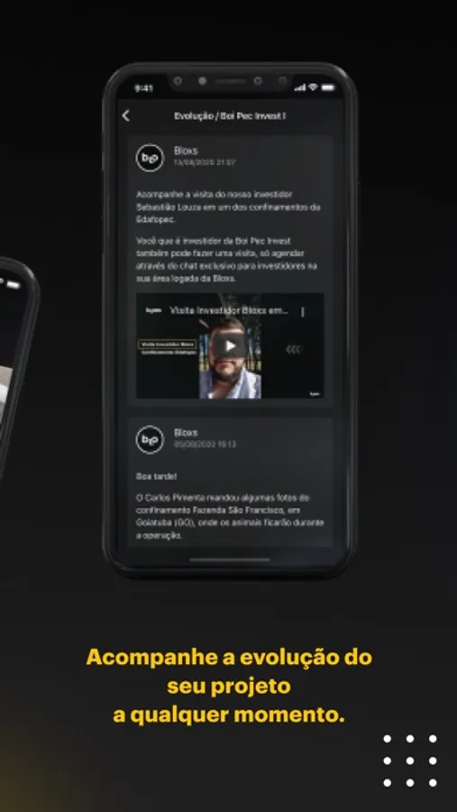Acompanhe através do seu smartphone os relatórios, contratos e imagens de todos os projetos investidos.