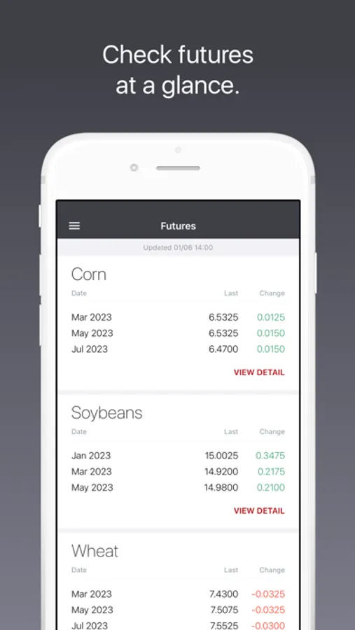 Futures: See Grains, Feed, Livestock, and Ethanol futures listed in order of your preference