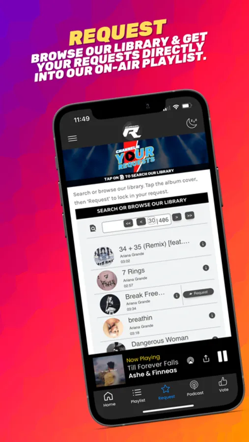 • Requests: Search or browse our music library and add songs that go directly on-air. We play requests every hour.