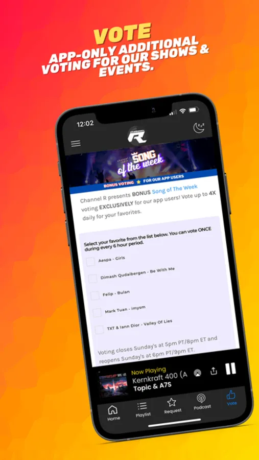 • Voting: Bonus & early voting for Song of The Week and other special events.