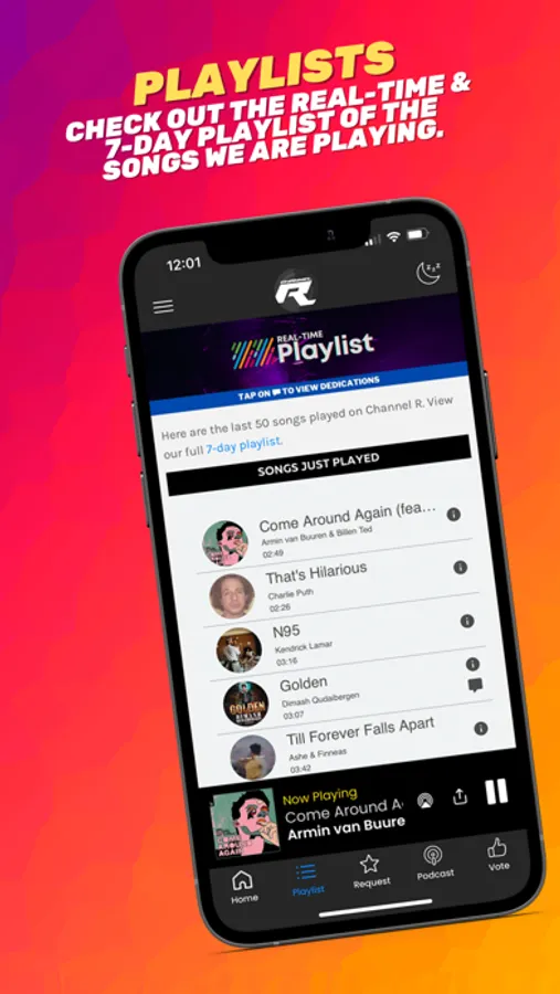 • Real-Time Playlist: Check out the songs we are playing and request songs that we have just played for future play.
