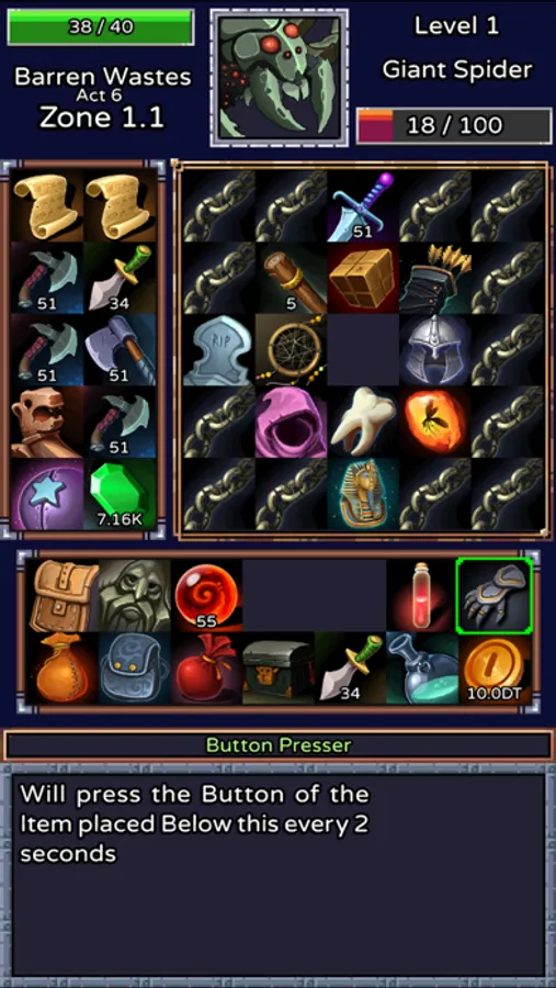 • Explore item interactions: what happens if you put your Button Presser next to your Potion of Stamina?