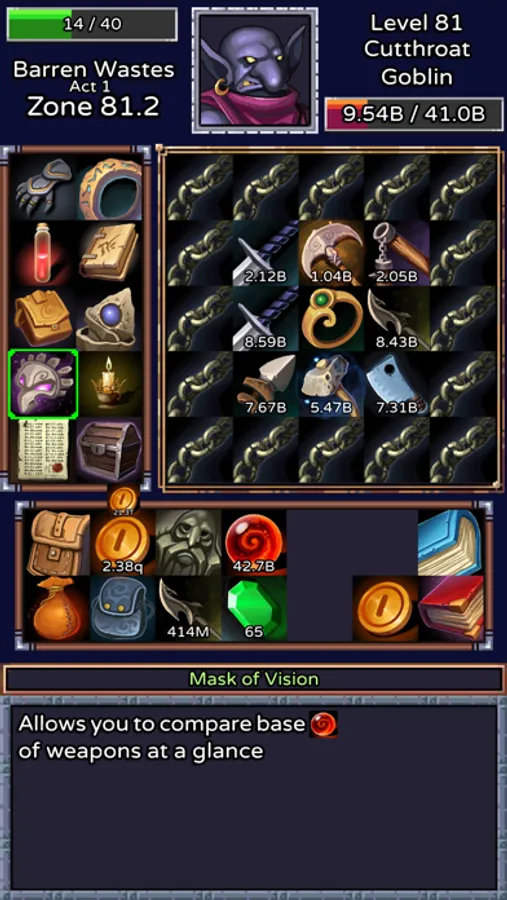 • Grim RPG is an incremental game, which means that you will be constantly improving your character and progressing through the game's content!