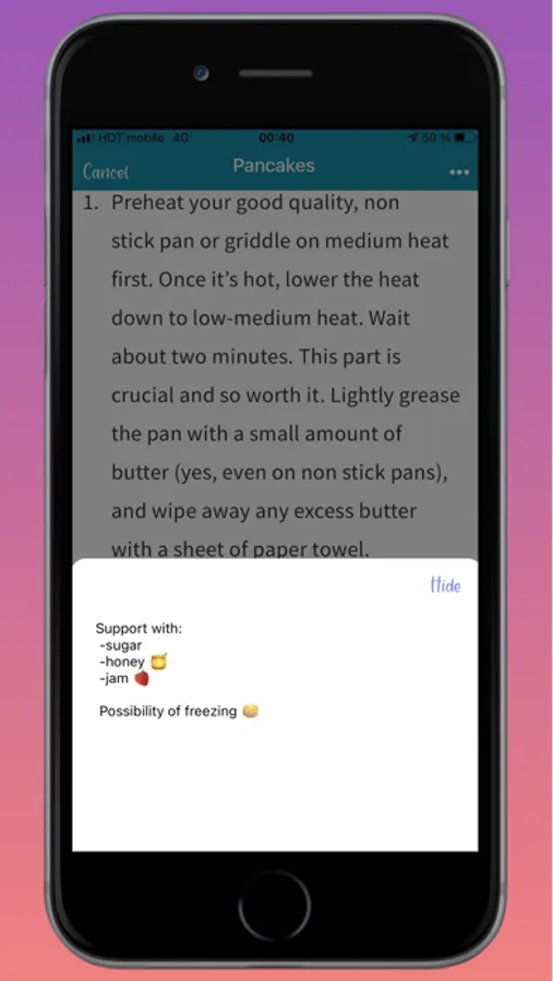My recipes don't need the internet to work. All recipes are saved on your phone.
