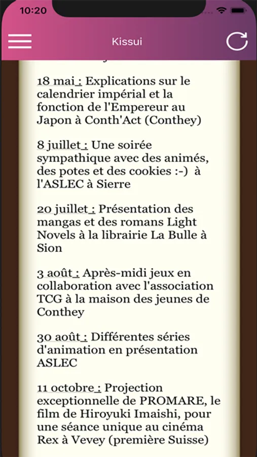 Cette application regroupe la plupart des contenus et informations de l'association dans un style compact et pratique différent de notre site web. Vous avez ainsi facilement accès à nos photos et différents articles.