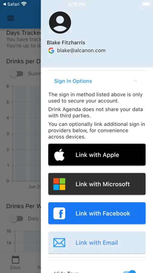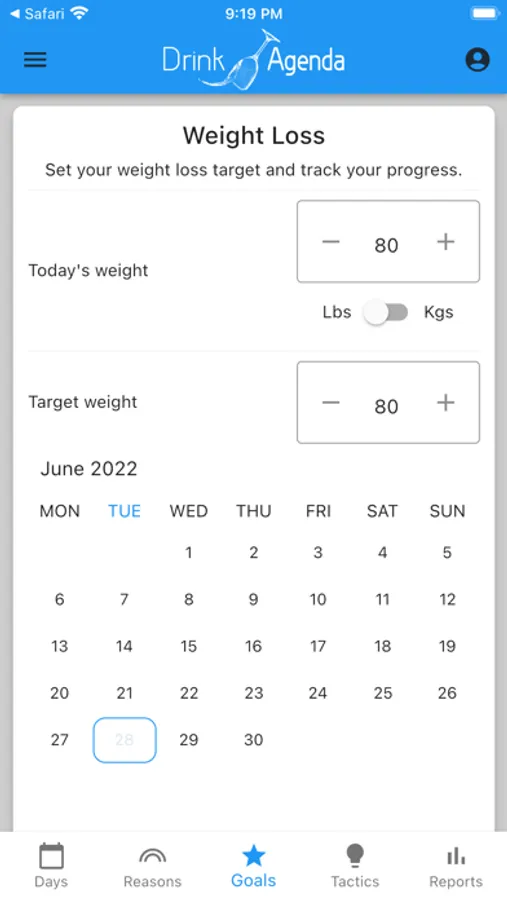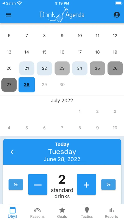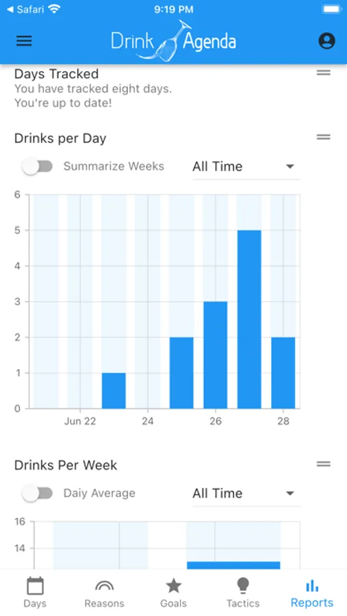 Drink Agenda is a simple and powerful tool for changing the way you think about alcohol. You can use Drink Agenda to manage a moderate drinking strategy, track dry days and weekly consumption, set and monitor goals like weight loss, and reinforce a healthier lifestyle.