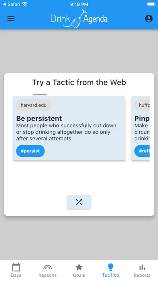 - Use the Reasons feature to remind yourself why you've decided to control your drinking