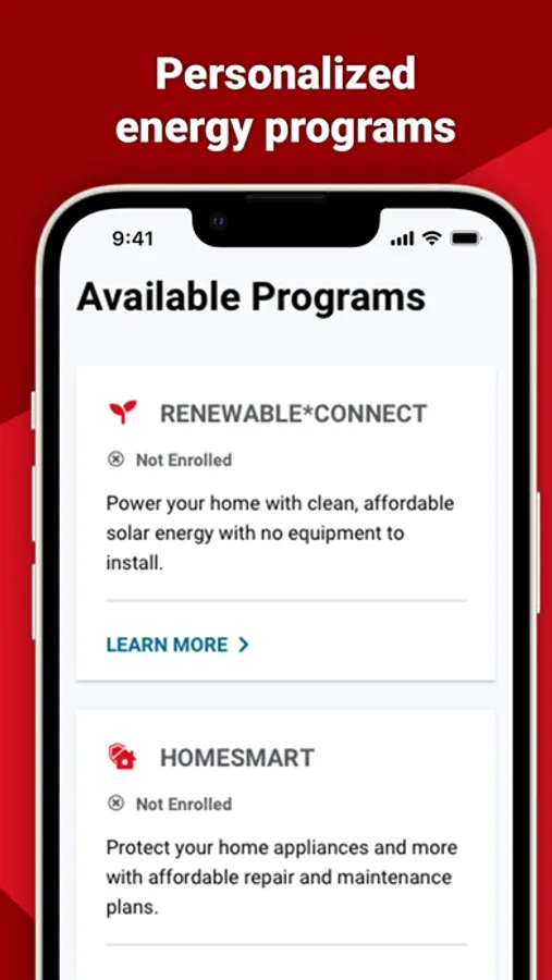 Quickly and easily enroll in clean, renewable energy programs. Get details and sign up for Xcel Energy billing programs like automatic payments or averaged monthly payments to make paying your bills even easier every month. Get piece of mind and protect your home appliances through HomeSmart. The My Xcel Energy mobile app provides access to all of the various programs that you may be eligible for.