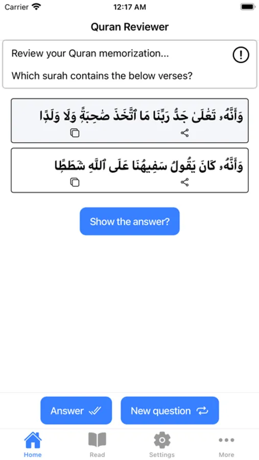 = View Quran questions, by checking the correct Surah which related to the viewed verses