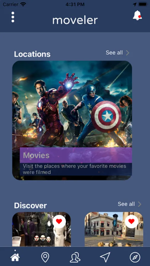 Moveler is the Show Travelers app for mobile devices. It presents a new way of traveling and knowing the world, discovering the unthinkable. It invites you to live a movie trip, creating a community and accompanying you in one of the best moments of life, when traveling for pleasure, combining two great pleasures of life: tourist trips and movies.