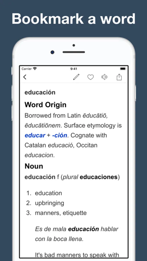 The leading Spanish English dictionary with detailed definitions, and advanced learning features.