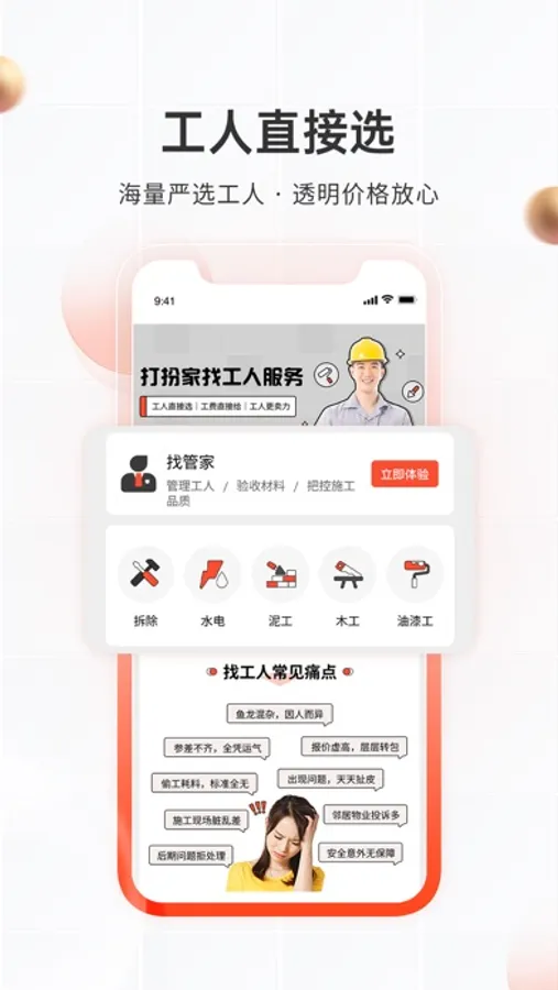 高素质新手艺人平台。施工层层严选培训,需要就直接选,没有中间商,行家出手,绝对无忧。