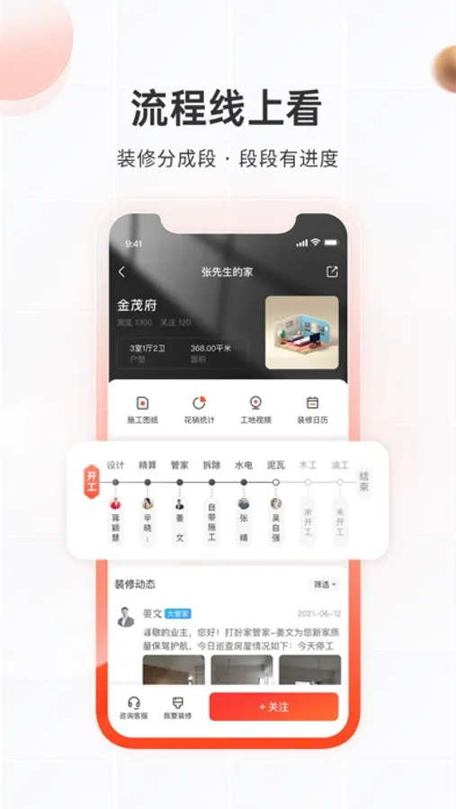 工程无小事,您的家我护航!全程贴心服务,装修上的事,他是行家,我多用心,您多省心!