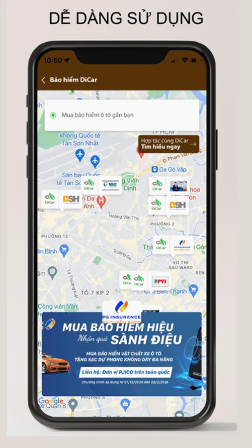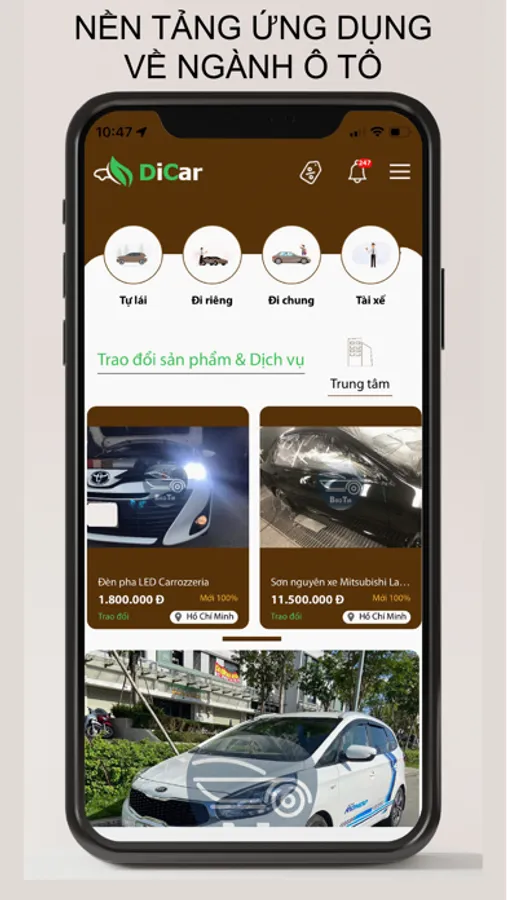DiCar là nền tảng cung cấp đa dịch vụ về lĩnh vực ô tô tại Việt Nam. Thuê xe tự lái, thuê xe có tài xế - đi riêng hoặc đi cùng chuyến, mua bán ô tô, cung cấp các địa điểm Garage chăm sóc ô tô uy tín, cung cấp công cụ tính phí bảo hiểm ô tô miễn phí. Với sứ mệnh mang lại sự tiện lợi và đơn giản đối với toàn thể người dùng.